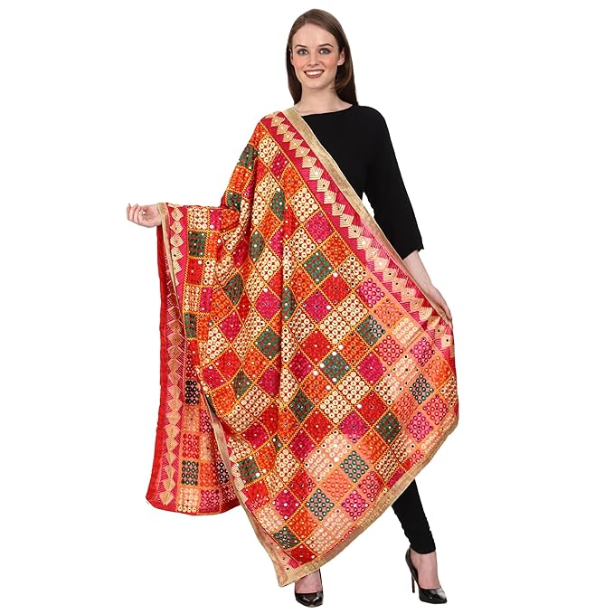 Colorful phulkari embroidered dupatta.
